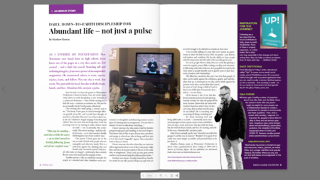 As I studied my pocket-sized New Testament over lunch hour in high school, Jesus burst out of the pages in a way that made me feel excited – and a little bit scared. Standing tall and radiating integrity, Jesus was a power of incomparable magnetism. He summoned others to trust, repent, rejoice, learn, and follow. Not one day a week, but seven. Not just with the head, but also with the heart, hands, and feet. Abundant life, not just a pulse.