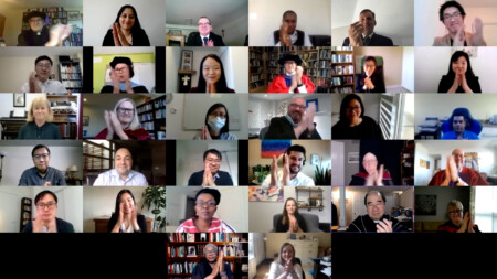 He said, “Tonight we celebrate together the conclusion of what has been a remarkably challenging year. We’ve studied together, we’ve taught together, we’ve worked together, we’ve eaten together, we’ve prayed together, we’ve wept together, and we’ve laughed together. All at a distance…. But we’ve done it together.”