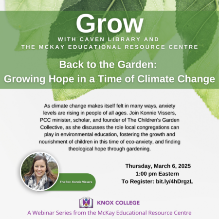 As climate change makes itself felt in many ways, anxiety levels are rising in people of all ages. Join Konnie Vissers, PCC minister, scholar, and founder of The Children’s Garden Collective, as she discusses the role local congregations can play in environmental education, fostering the growth and nourishment of children in this time of eco-anxiety, and finding theological hope through gardening.