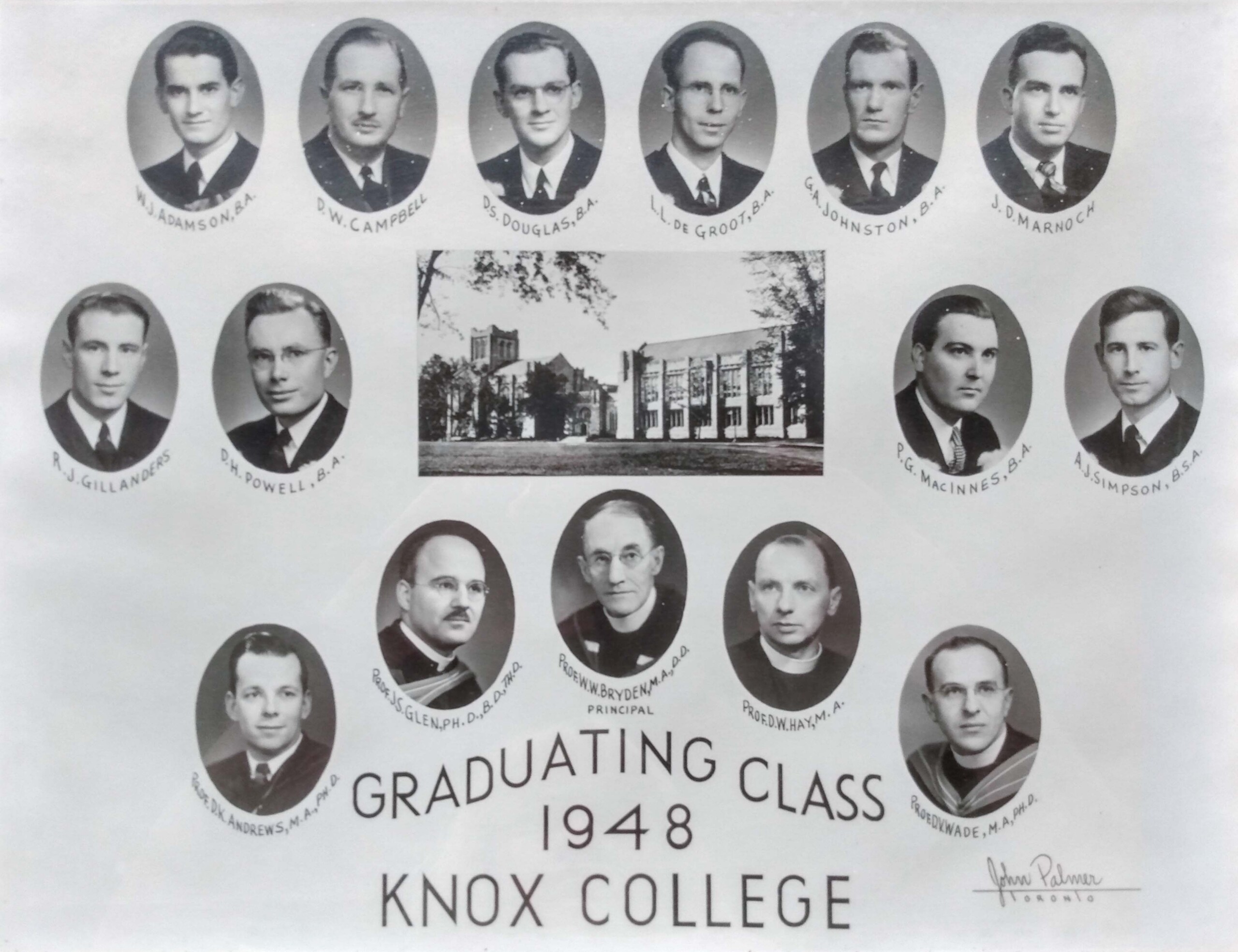 The Rev. R.J. Gillanders, the last surviving member of the Knox College class of 1948, passed away on July 17, 2021. Our condolences to Rev. Gillanders’ wife Noreen, and other family and friends.