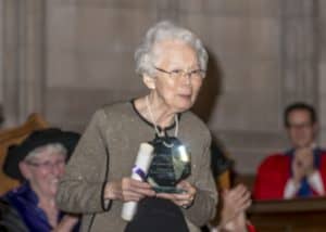 In 2000, Knox College granted Tam a Doctor of Divinity degree (honoris causa). In 2014, Knox College also recognized her with an award for Distinguished Leadership at Knox’s 170th Anniversary Convocation. She received this honour for her leadership as a diaconal minister in the Korean Christian Church in Japan, direction of the Women’s Missionary Society, and compassionate work in bringing cultures together as the first lay Moderator of The Presbyterian Church in Canada.