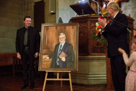 Artist Sergey Malina unveiled his portrait of Dr. Vissers, which will hang in Caven Library along with the portraits of Vissers’ predecessors.